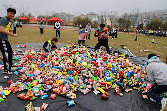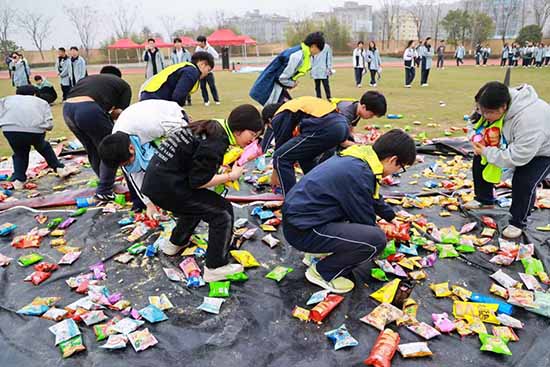 马拉松结束后,“高三抢分进行时·零食大作战”趣味接力赛启动。18个班级分两组参赛,每班10名选手(第一棒为班主任)协同比拼。活动既展现学子备考抢分劲头,也彰显师生同心的温暖,赛后零食分享让欢乐浸润学子心房。