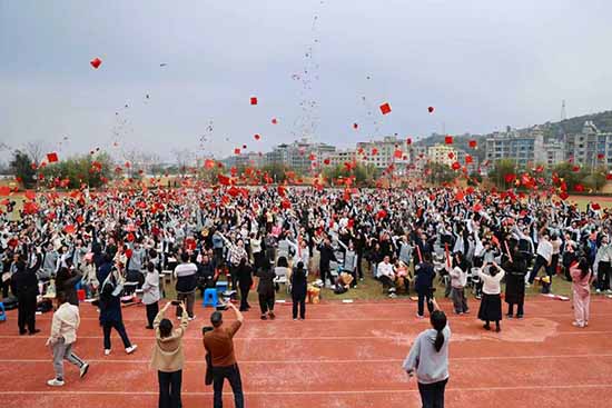 致辞后,活动依次开展学生与家长代表上台分享心声、马拉松颁奖、佩戴成人帽、亲子共读信件、家长赠礼、班级宣誓等环节。家长为学子佩戴成人帽,一顶顶帽子承载着期许与祝福,标志着学子们正式迈入成年;亲子共读跨越时光的信件,纸短情长,道不尽父母的牵挂与期盼、学子的感恩与决心;家长们送上精心准备的礼物,把最深的祝福藏进细节里;全体学子高举右拳、庄严宣誓,誓言铿锵,响彻校园,彰显着成年的担当与奋进的决心。(蔡燕)