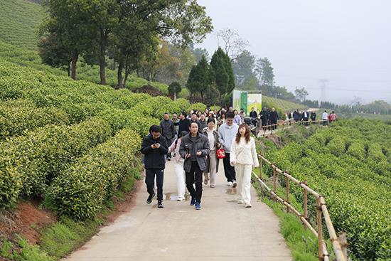 当天上午,教职工们统一乘车前往生态茶园基地。步入茶园,满目新绿层层叠叠,春日茶芽鲜嫩欲滴,清风拂面,茶香沁人心脾。大家漫步在蜿蜒茶垄间,驻足观景、合影留念,沉浸式感受茶园生态之美与春日田园气息,在自然绿意中卸下疲惫、尽享闲适。