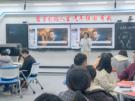 思维碰撞:研途同行,共话教学新路径。公开课交流研讨环节由嘉兴市中职语文理事糜跃明主持。执教老师分享了将AI融入教学的设计思路与课后反思,参训教师则围绕“AI赋能文本细读”这一主题,从技术应用、课堂互动、学生参与等多个维度展开深入探讨。大家一致认为,两堂课都在AI赋能经典阅读方面做出了有益探索,为传统语文教学注入了新的活力。热烈的研讨中,智慧的火花不断迸发,教学的共识在碰撞中逐渐凝聚。
