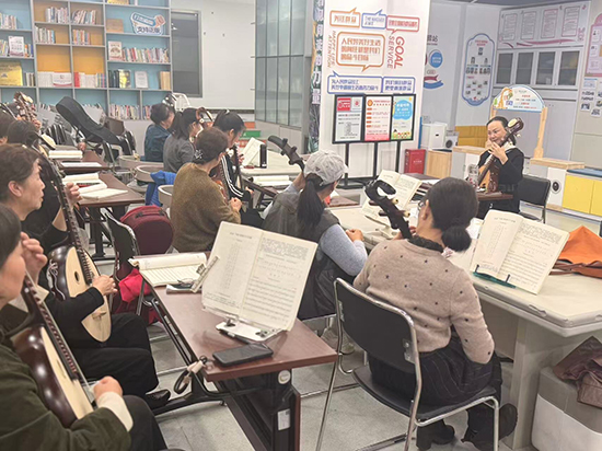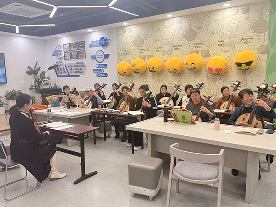 中阮作为中国传统弹拨乐器的瑰宝,音色圆润柔和、醇厚悠远,兼具高音的清脆与低音的深沉,素有“东方吉他”之美誉,因其上手难度适中、韵味独特,深受老年居民的喜爱,是传递传统文化魅力的重要载体。中阮班的开设,既是落实“文化惠民”政策的具体举措,也是搭建邻里交流、以乐养心平台的生动实践,让老年居民在学习中感受传统乐器之美,丰富晚年精神文化生活。