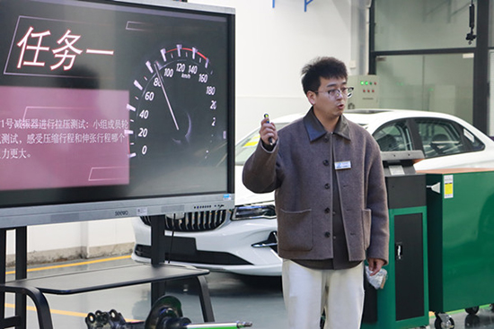 天台技师学院毛楚鹏老师展示《悬架的秘密——出车前的静态检查》课程,采用任务驱动教学法,有效激发学生的探究兴趣。