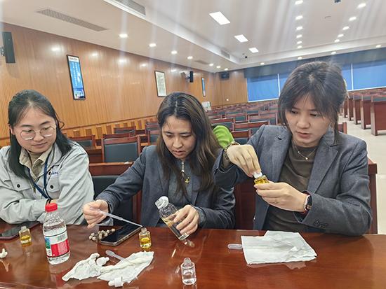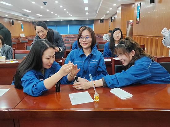 活动现场,专业讲师围绕水油双相精华液原理、植萃原料护肤功效及不同肤质适配技巧进行细致讲解,帮助职工深入了解天然护肤知识,以健康之美呼应“最美杭州”的城市风貌,让文明理念在日常服务中润物无声。在实操环节,职工们在讲师指导下,根据自身肤质需求,精准调配桂花纯露、分馏椰子油、薰衣草精油等天然原料,亲手完成专属精华液的制作,在沉浸式手作中放松身心、舒缓压力,以指尖匠心传递“桂在你我”的邻里温情,让跨企业职工在互动中凝聚共识、增进联结,恰似桂花一篷篷一簇簇绽放,彰显团结与共建的力量。