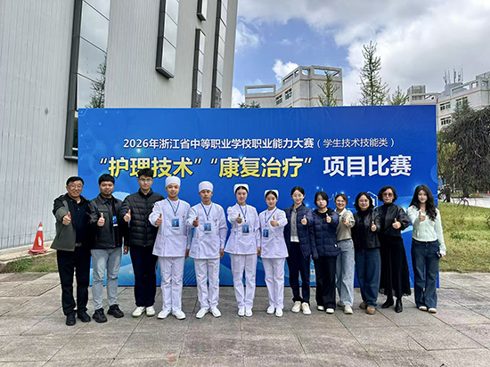 4月1—2日,浙江省中等职业学校职业能力大赛(学生技术技能类)“护理技术”项目比赛在金华职业技术大学举行。来自省内各中等职业学校护理专业19支队伍参与比赛。海宁卫生学校(海宁市综合高级中学)参赛选手王玉、陆宸嘉、胡予玄、何杭俞,助赛选手桑甚、郭雪婷、计龙毅、徐嘉琪,凭借新颖的项目设计、精湛的操作技能、出色的团队合作精神和灵活的应变沟通能力获得一等奖(第一名),成绩遥遥领先,再次取得世界职业院校技能大赛资格。
