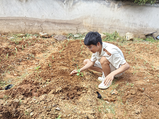 在指导老师何焕永的悉心指导下,社团成员们利用中午和傍晚的休息时间,在校园一角开辟出的菜地里忙碌起来。大家分工合作,有的挥舞着锄头翻土整地,有的仔细地撒下蔬菜种子,有的则提着水桶为刚种下的幼苗浇水。虽然汗水浸湿了衣衫,但每个人的脸上都洋溢着兴奋与期待的笑容。