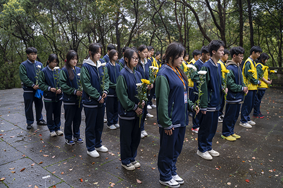 仪式伊始,全体人员面向烈士纪念碑肃立默哀一分钟。同学们低头垂首,深切追思先烈们为国家独立、民族解放而英勇献身的感人事迹。青山不语,丰碑无言,在这一分钟的静默里,历史与现实交汇,每一位青年学子的心中,都悄然种下了一颗名为“家国”的种子。