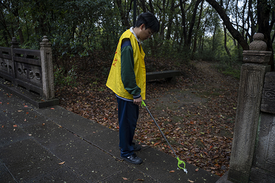 献花仪式礼成,同学们拿起扫帚、夹子等工具分头行动。对陵园内的公共区域,尤其是烈士纪念碑四周、步道两侧及花坛角落的杂物、落叶进行了彻底清理。清洁过程中,同学们保持着对逝者的敬畏,动作轻柔舒缓,队伍整齐有序。一俯一拾之间,是对英烈最质朴的告慰。有同学感慨道:“我们用双手擦亮的不仅是石碑和台阶,更是心中对祖国的热爱与忠诚。”这份在劳动中升腾的敬畏之心,正是爱国主义最真实的表达。