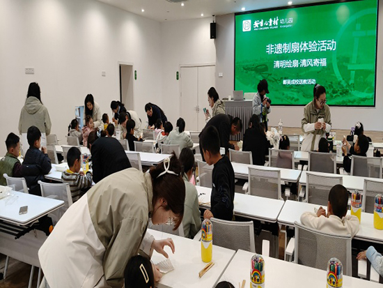 4月3日上午,安吉县社区教育学院天子湖分院鄣吴学习中心联合儿童村幼儿园,开展“清明绘扇·清风寄福”非遗制扇体验活动,中大班幼儿在非遗传承人指导下,亲手制作折扇、绘制扇面,感受昌硕故里文化魅力。