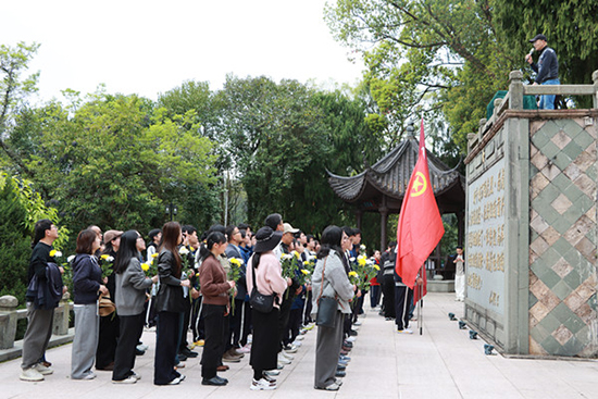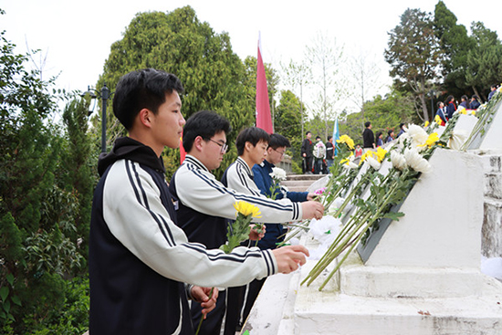 当天下午,师生们整齐列队,怀着无比崇敬的心情步入庄严肃穆的烈士陵园。
