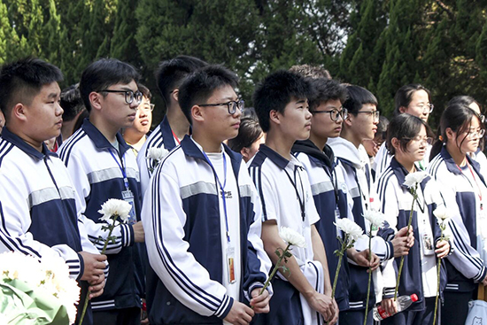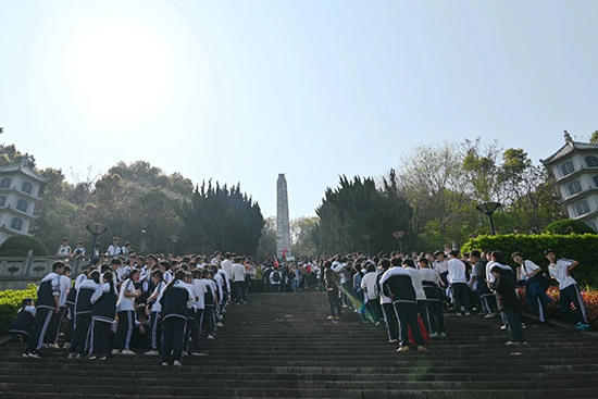 清晨,学校党员教师、团员教师和高一年级学生1500余人怀着对革命先烈无比的敬意与无限的哀思,昂首阔步走向东山烈士陵园。党旗、团旗和校旗迎风飘摇,他们用自己的脚步丈量曾经先烈们的红色足迹,用自己的毅力体验曾经先烈们的坚韧不拔,体会今天的盛世繁华来之不易。