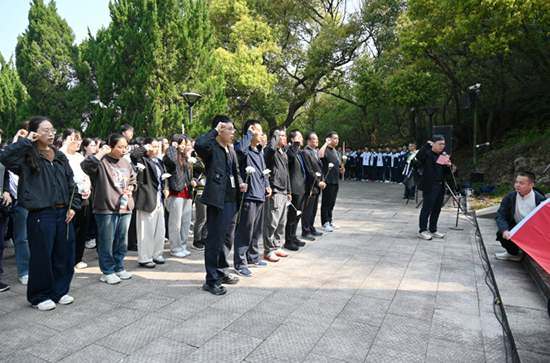 最后,校党委书记朱晓明在烈士纪念碑前深情寄语全体学子。海宁这片浸润英雄热血的土地,孕育了无数仁人志士,他们用生命守护家园,用热血铸就精神丰碑。希望同学们铭记先烈遗志,厚植爱党爱国爱家乡的情怀,把缅怀与热爱转化为勤学苦读的实际行动,要接过先辈接力棒,立大志、明大德、成大才、担大任,紧密结合海宁时尚产业等优势领域潜心钻研,努力成长为建设家乡的高素质技能人才,以青春之我为海宁高质量发展贡献力量。