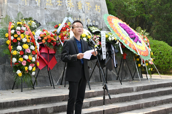 学生代表发言:“今天我们站在这里,缅怀他们,感念他们,表达敬意,就要学习和继承革命先烈不畏危险勇于奉献的精神,珍惜美好的时光,勤奋学习,为祖国贡献青春的智慧和力量。”