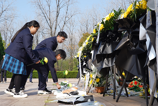4月1日上午,嘉兴革命烈士陵园松柏苍翠、丰碑巍峨。秀水中专师生代表身着整齐校服,手持黄白菊花,在烈士纪念碑前肃立并默哀一分钟,向为民族独立、人民解放和国家富强英勇献身的革命先烈表达深切哀思。