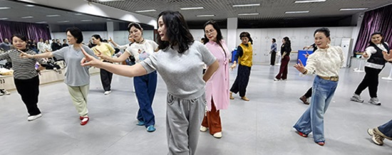 简短而庄重的开班仪式结束后,两位老师立即投入到紧张有序的教学中。她们首先带领学员进行热身走步,耐心细致地示范步法与手势,不放过任何一个细节。随后,根据学员特点与自身优势,将大家巧妙分为花旦组与小生组,开展针对性教学。在两位老师的悉心指导下,学员们迅速进入状态,全神贯注地认真练习,现场学习氛围浓厚。不久,大家便转入越剧经典剧目《牡丹亭·惊梦》的学习中,各展风采,将越剧的韵味展现得淋漓尽致,现场仿佛一场精彩的越剧盛宴正在徐徐拉开帷幕。
