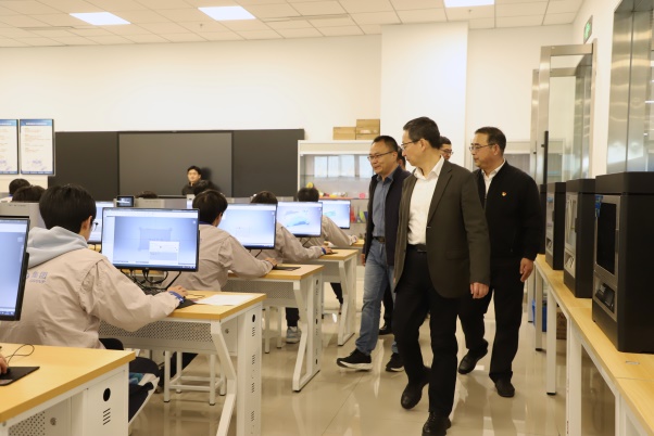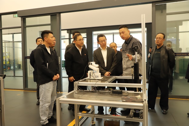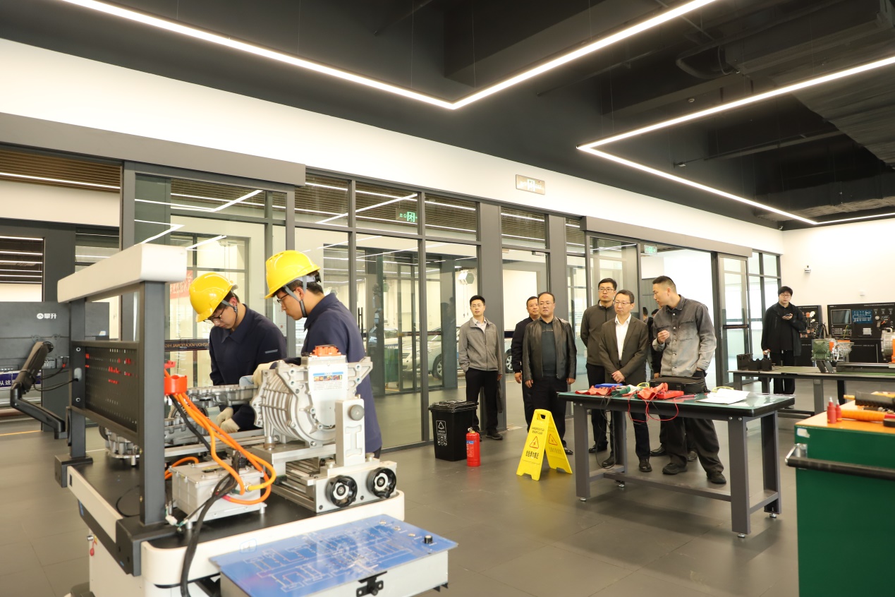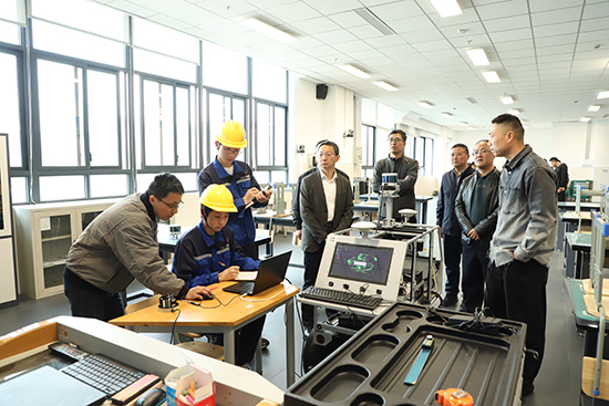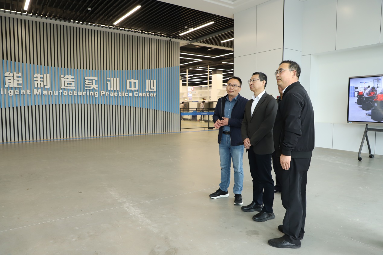 接下来,徐岩副市长一行前往1号实训楼,调研智能制造专业群和交通运维专业群。徐岩副市长参观了工业机器人、增材制造、新能源汽车、智能交通等实训场地,详细了解校企协同育人模式,对学校坚持“岗课赛证”融合、立足服务地方产业发展、推动教育链与产业链有机衔接等举措给予肯定。