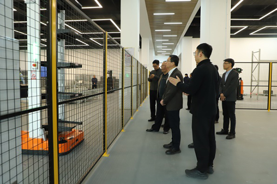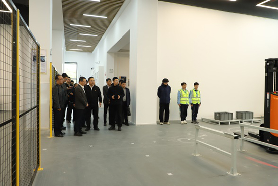 随后,徐岩副市长一行来到2号实训楼,实地调研供应链管理专业群综合实训基地。该基地集聚供应链管理与数字艺术相关专业,一楼建有智链生产物流实训中心,配备智慧物流机器人、机器人调试系统和仓储管理系统,在学生的演示下,徐岩副市长观看了物料出入库流程及生产模拟的场景,了解了实训基地的产教融合开展情况。