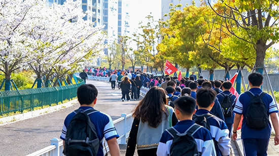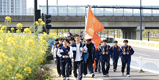 从校园到临平山,12公里的征途,不仅是对体魄的考验,更是对意志的磨砺。行进途中,师生们相互照应、彼此鼓励,没有一人掉队。大家在行走中磨炼坚韧意志,将“健康第一”的理念落到实处,让“弘乔思政学堂”的育人内涵在每一步脚下生根发芽。