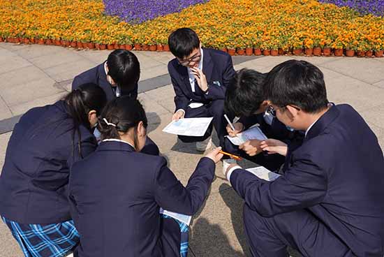 上午10时,师生整齐列队,整装待发。一路风景,一路思考,学生拿着德育处设计的“行走的思政课”学习单,时而驻足远眺湖心岛,时而低声交流所见所感。历史不再是书本上静止的文字,而是化作脚下温润的土地和眼前流动的风景。在会景园,学生仔细品味中国园林的造景手法,有感而发;在“中国红色之旅”纪念碑前,学生们提笔速写,一笔一画间,“红色之旅”四个字不仅留在了纸上,更印刻在了心中。