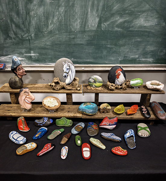 第一课时授课环节,子非老师从石头选材、颜料调配、基础构图等入门知识讲起,结合实操示范,手把手指导学员们在石上勾勒线条、填充色彩。学员们全神贯注、认真创作,在一笔一画中感受手工创作的乐趣,原本朴素的石头在大家的巧手下,逐渐变成了灵动鲜活的山水、萌宠、风景等艺术品,课堂上充满了创作的热情与成就感。