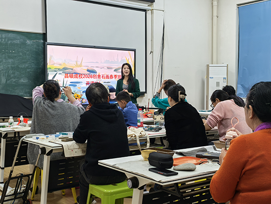 创意石画是将天然石材与绘画艺术深度融合的特色手工项目,兼具趣味性、艺术性与实用性。昌硕分院此次开设创意石画班,不仅为辖区居民搭建了学习技能、交流互动的优质平台,更让大家在动手创作中陶冶情操、丰富精神文化生活,进一步推动了社区文化建设,让传统手工艺术在新时代焕发蓬勃生机。(夏晓红)