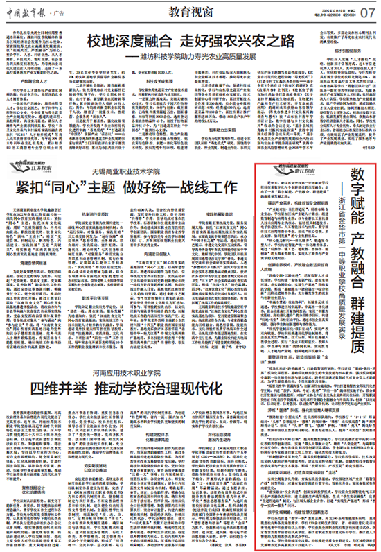 金一职探索形成的中职数智化转型解决方案,凭借其普适性和实用性,吸引了省内外三十余批次团队前来考察交流;学校的建设成果也得到权威媒体关注,《中国教育报》、人民日报客户端等先后进行专题报道,学校党委书记吴文军还应邀在《教育家》杂志社论坛上作主题发言,学校的数字化品牌影响力持续增强。