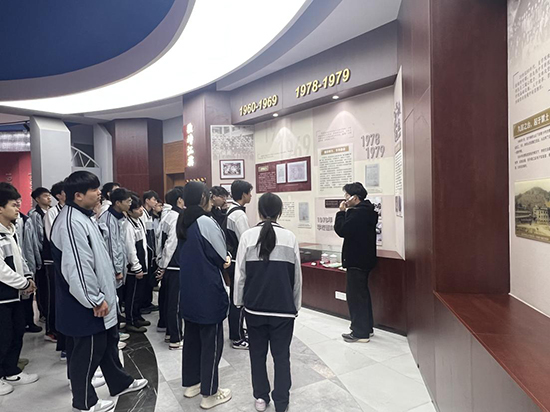 上午,在浙江工贸职业技术学院相关负责人李辉老师的热情陪同下,柳市职校师生一行首先走进校史馆。馆内近万张珍贵照片、百余件历史实物,以及以“独峙江滨、江潮涌动、潮起瓯江”为脉络的展区设置,全面展现了学校从1960年温州动力机厂技工学校起步,六十余载实业报国、砥砺前行的办学历程。师生们驻足于大型瓯塑作品《跬步之光弦歌悠远》前,聆听讲解,深刻感受学校“工于匠心,贸通天下”的精神底蕴与改革创新的办学理念,在追溯历史中感悟职教初心,明晰职业教育的传承与发展。