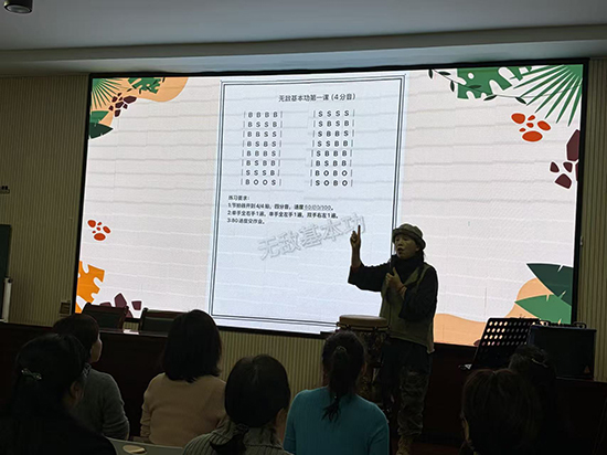 伴随着热情洋溢的话语,首堂教学课正式拉开帷幕。禅兮老师从非洲鼓的文化背景讲起,细致示范持鼓姿势、基础手型,逐一拆解低音、中音、高音的击打技巧,用通俗易懂的语言和生动有趣的示范,带领零基础学员快速入门。