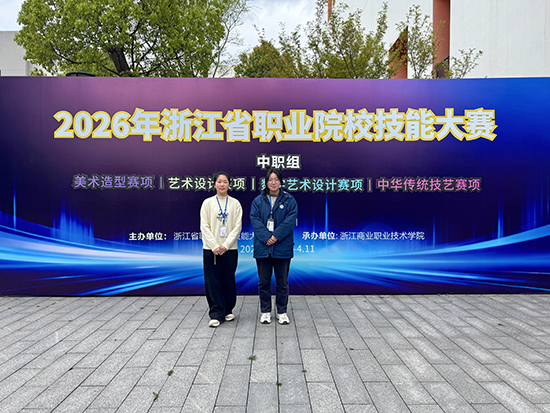 3月31日,2026年浙江省中等职业学校职业能力大赛(学生技术技能类)“艺术设计”项目比在浙江商业职业技术学院落下帷幕。海宁市职业高级中学由时尚艺术部副部长王庆福带队,孙广营、张晴两位教师指导,郭思琦、顾田两位同学参赛。两位选手凭借扎实的专业功底与默契的团队协作,荣获团体三等奖。