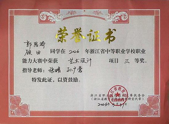 此次获奖是学校平面设计专业“岗课赛证”融通育人成果的集中体现。学校将以此为契机,继续深化产教融合、科教融汇,推动专业建设与产业需求紧密对接,培养更多高素质技术技能人才,服务区域文化创意产业发展。(时尚艺术部 章佳妮)