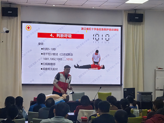 在实操环节,学员们在教师指导下逐一进行模拟练习,从判断意识、呼救、胸外按压到人工呼吸,反复打磨每一个动作要领。培训结束后,学员们参加了理论与实操考核,考核合格者将获得红十字救护员证书。