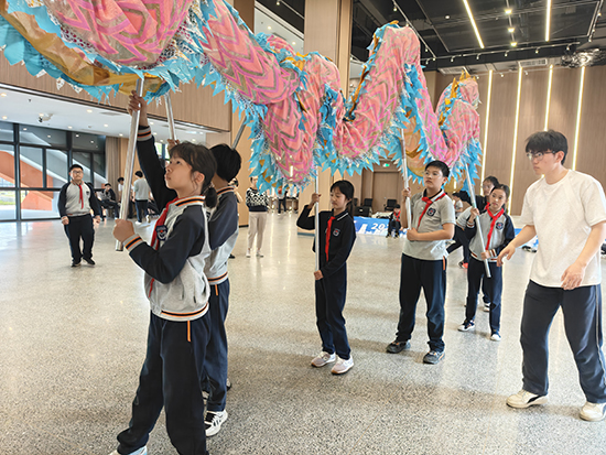 “握杆要稳,龙头跟着鼓点走,像这样——左摆右摆,龙就‘活’啦!”舞龙舞狮体验区,24机电中高班李同学边喊口号边示范,小朋友们攥着彩色绸带,跟着“小老师”的节奏扭动身体,一条“小龙”就这样翻腾起来了。茶艺室里,24旅游班王同学手把手教授萌娃温杯、投茶、冲点、奉茶的步骤,动作行云流水,引得其他孩子们目不转睛。
