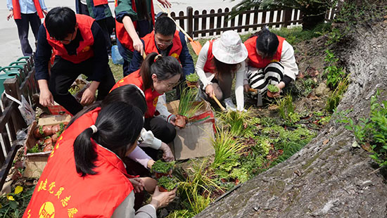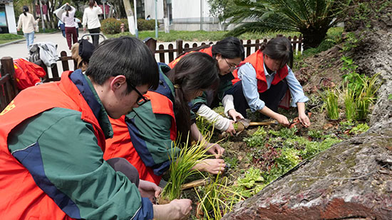 春风送暖,万物勃发。在这个生机盎然的季节里,为充分发挥党建引领作用,践行“绿水青山就是金山银山”的生态理念,4月4日上午,嘉兴市建筑工业学校艺馨党支部党员志愿者携手团员志愿者,以师带生,以党建带团建,开展了一场别开生面的校园园林小景微改造活动。