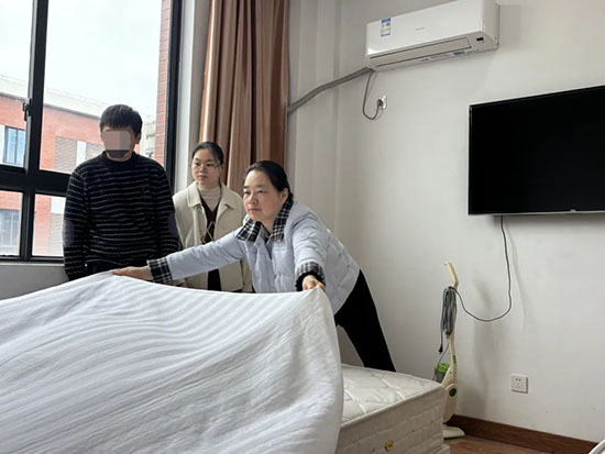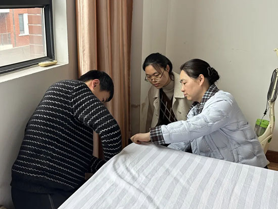 印老师结合职教教学经验,围绕家政技能规范、特殊学生实操引导等内容与授课教师深入交流,助力提升课堂实效。