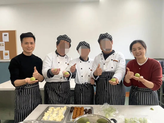 活动中,孟老师、印老师分别进入中式面点、家政服务实训课堂,沉浸式观摩教学流程,捕捉教学细节。