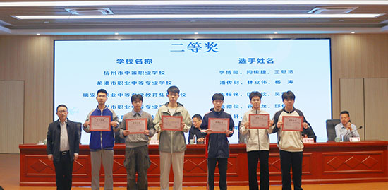 4月11日上午,大赛闭幕式在学校木玩楼五楼报告厅举行。浙江旅游职业学院纪委书记严一平,云和县教育局党组书记、局长邱德锋,浙江旅游职业学院数字技术应用学院党总支书记周慧颖,云和县中等职业技术学校党总支副书记、校长杨伟华等领导嘉宾出席仪式,各代表队领队、指导教师及参赛选手共同见证荣耀时刻。闭幕式由学校副校长王柳娟主持。 大赛裁判长对赛事进行专业点评,充分肯定全体选手的精彩表现与职业素养,指出未来改进方向,为选手后续成长提供有力指导。