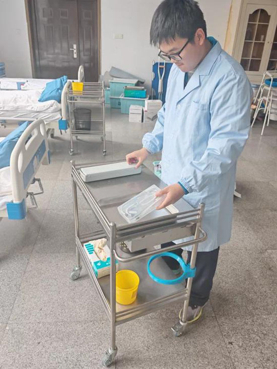 怀着对老龄化社会的敏锐洞察,以及对“技术赋能服务,关怀温暖人生”理念的深切认同,王啸辉选择了智慧健康养老与服务这一既有前景又有温度的专业。他坚信,未来的健康养老不仅需要扎实的护理知识,更离不开智慧化的管理思维与人性化的服务设计。在秀水中专,他系统学习专业理论与实务技能,从老年生理心理特点到智能照护设备应用,逐步构建起完整的行业知识框架。老师们始终引导他将“人文关怀”置于技术应用的核心,启发他思考如何让科技更有温度——这份启迪,为他后来的跨界探索埋下了最初的种子。
