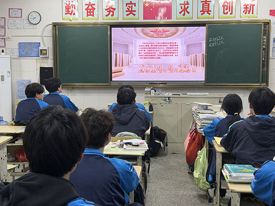 与此同时,校园各处电子屏化身“安全宣传阵地”,滚动播放全民国家安全教育日宣传图片及总体国家安全观内涵解读,营造出“人人关心国家安全、人人维护国家安全”的浓厚氛围。