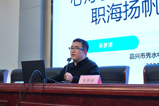 朱梦泽老师带来实习生心理调适专题分享。他引导学生识别实习期间易出现的焦虑、迷茫、适应不良等情绪问题,分享简单易行的心理调适方法,搭建实用“心理调适工具箱”,助力学生培养成长型心态,以积极平稳的状态适应职场节奏、应对工作挑战。