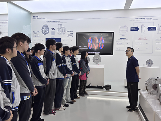 为了让金巴“蓝鹰之星”班学生直观地了解行业前沿和岗位要求,学院专门安排了此次企业参观研学活动。在盘毂动力技术人员的引导下,学生们走进车间、展厅,近距离观摩电驱动产品的生产流程和先进工艺。从零部件加工到整机装配,从质量检测到应用场景展示,学生们一边看、一边问、一边记。