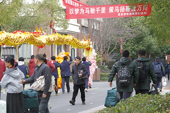 为了让同学们拥有舒心、暖心的返校体验,学校各部门早早就开启了“开学筹备模式”,把用心藏在每一个细节里。班主任们提前到岗,整理教室、核对返校信息、手绘板报,用整洁的教室和贴心的叮嘱迎接学生归来;财商部的老师们更是煞费苦心,熬夜策划返校趣味活动、手工制作投壶签子,学生志愿者们也主动参与,挂灯笼、贴灯谜、布置活动场地,从校园环境到特色活动,从流程安排到细节服务,全方位的筹备只为给同学们一场充满仪式感的开学之旅。校门口更是热闹非凡,学校舞龙舞狮队的精彩表演率先点燃开学氛围!表演从校门口出发,绕教学楼巡游一圈,霸气的舞龙、憨态可掬的舞狮吸引了返校师生纷纷驻足观看、拍照打卡,喜庆的氛围溢满整个校园,为新学期讨了个红红火火的好彩头。
