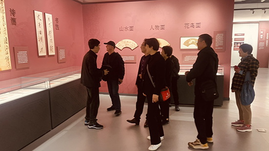 参观完紫岩禅寺后,大家徒步前往枫桥三贤馆。该馆位于枫桥镇钟瑛路58号,总占地面积约2.5万平方米,由4个场馆及1个文化广场组成,内设主展馆、游客接待大厅、休闲书咖、文创展示区,并挂牌“中国美术学院美育实践基地”“荣宝斋画院写生创作教学培训中心(浙江)”等平台。步入二楼主展馆,“大哉丹青——中国文化史上的枫桥三贤”主题展览赫然入目。展馆系统陈列王冕、杨维桢、陈洪绶三位先贤的诗文、书画等珍贵展品,并运用数字光影、沉浸式场景等现代技术,全景式再现三贤的艺术造诣与人格风骨。中央文史研究馆馆员、复旦大学资深教授葛剑雄曾评价:三贤值得专馆纪念,源于他们对中华文明与中华民族作出的卓越贡献。三人皆是集画家、书法家、诗人、学者于一身的杰出大家,其传世作品与遗物堪称艺术瑰宝、文化遗产,为海内外多家博物馆、艺术馆及收藏家珍藏。以数字化手段集中呈现,更便于大众感知体悟;在三贤故里借助现代科技近距离欣赏佳作,更能生出独特的亲切感,深刻体会其生长环境与精神世界。