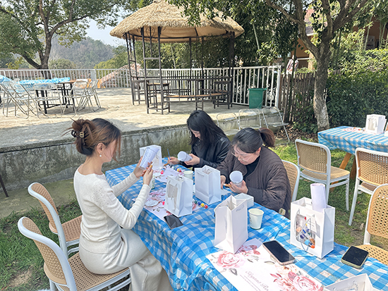 农庄内草木葱茏、暖意融融。活动现场,老师们卸下三尺讲台的疲惫,沉浸式享受专属美好时光,土灶农家菜香气扑鼻,大家围坐一桌,品尝着原汁原味的农家风味,畅谈工作与生活的点滴,欢声笑语不绝于耳;手工艺杯子制作环节中,老师们巧手灵动,指尖流转间,一件件独特的手绘杯子渐渐成型,尽显职教女教师的细腻与才情;围炉煮茶区暖意氤氲,茶香袅袅,老师们品茗闲谈,在慢时光中舒缓身心。