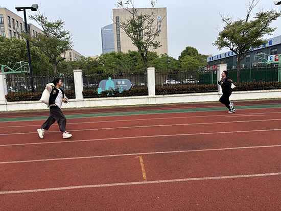 “负重前行”运粮食接力赛,6人依次扛沙袋规范交接,严格遵循比赛规则,传承了垦荒先辈脚踏实地、艰苦奋斗的初心。