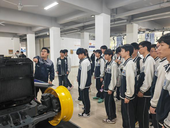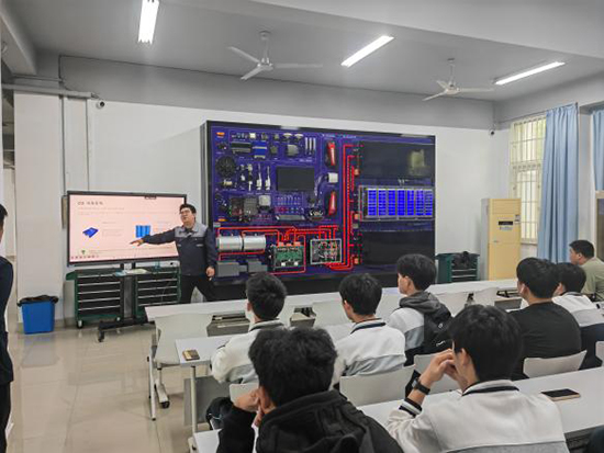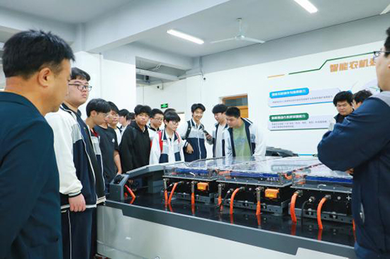 随后,师生一行先后走进实训室与图书馆。在实训场地,专任教师为学校学生开展了一堂生动的新能源农机专题教学。教师结合行业发展实际,深入浅出地讲解新能源农机的发展趋势、核心技术及其在现代农业中的应用场景,同学们认真聆听、积极互动,课堂氛围浓厚。图书馆雅致的阅览环境与丰富的馆藏资源,也给同学们留下了深刻印象。
