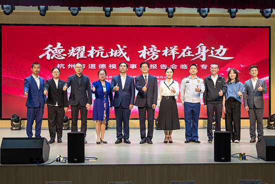 五位道德模范的事迹或经各类媒体重点宣传,广为传颂,或在平凡岗位默默无闻无私奉献,事迹鲜为人知。报告会上,杭州市道德模范、2026年度新时代青年先锋、萧山区消防救援站队员陈有钱,全国劳动模范、全国五一劳动奖章获得者、杭州市道德模范、浙江花都美容美发培训中心创始人罗红英,省“万人计划”科技创新领军人才、杭州市道德模范、浙江杭汽轮动力科技集团有限公司技术带头人隋永枫,杭州市道德模范、临平区耕读园公益助学团队负责人高玲英,时代楷模、全国脱贫攻坚先进个人、浙江省道德模范、原杭州学军中学校长陈立群,五位来自不同岗位的道德模范依次登台,分享了他们扎根各自领域、无私奉献的感人故事。