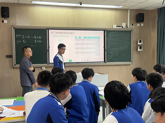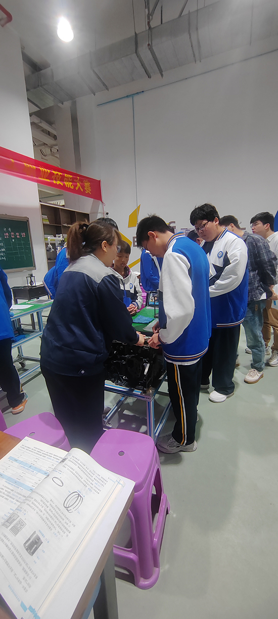 次日上午,公开课在两个场地同步进行。电子电工专业课堂上,磐安职教中心杨亚坤老师执教《电容器的前身与今世》,兰溪职业中专闫肃老师讲授《基本RS触发器》,两节课设计严谨,信息技术手段运用充分,学生参与度较高。与此同时,汽修实训中心内,磐安职教中心周洪辉老师展示了《继电器控制白炽灯电路》实操教学,永康职业技术学校吕玲晓老师进行了《活塞连杆组的认识与检查》项目化教学,注重学生动手能力与职业素养的协同发展。课后,电子电工组与汽修组分别开展分组评课、抽测及考试交流,教师们就课堂亮点与改进方向进行了充分探讨,现场研讨氛围浓厚。