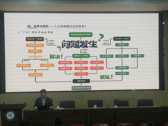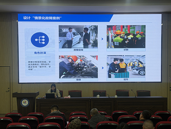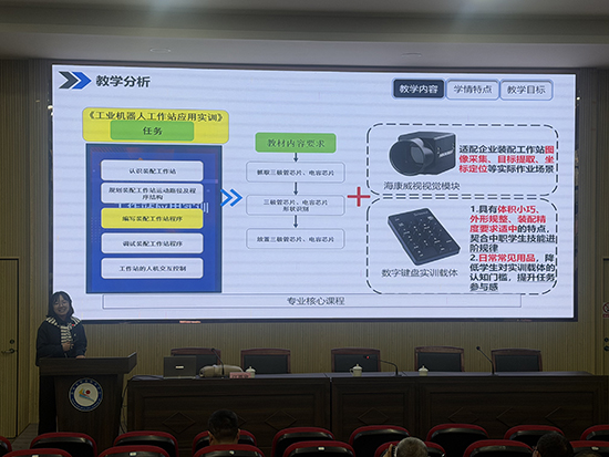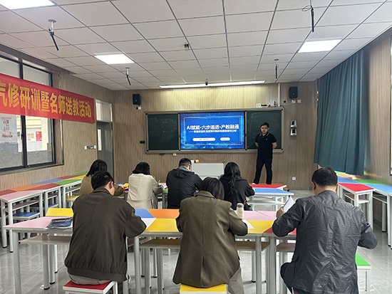当日下午,分组信息化说课比赛在录播教室同时举行。参赛教师依次登台,围绕教学设计、信息化手段应用、课堂实施与反思改进等环节进行说课展示。评委认真评审,旁听教师专注记录。活动最后,全体人员返回八角楼报告厅,进入总结与颁奖环节。张国红对两天的研训送教工作进行了全面总结,肯定了各校教师在专业建设与教学改革中的扎实探索,并逐一宣布说课比赛成绩。作为名师工作室负责人,他在总结中鼓励青年教师借助工作室平台加速专业成长。现场掌声不断,多位获奖教师表示,此类活动对日常课堂教学改进具有切实的指导意义。