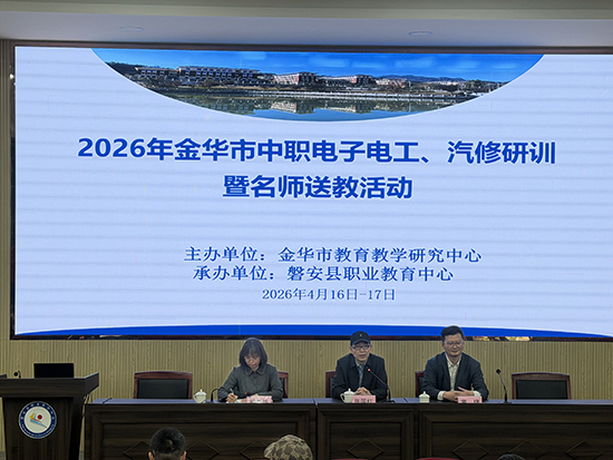 4月16日至17日,2026年金华市中职电子电工、汽修专业研训暨名师送教活动在磐安县职业教育中心顺利开展。来自全市各中职学校的电子电工、汽修骨干教师及教研员齐聚一堂,围绕课堂数智化转型、信息化教学实践、专业课程重构等主题展开深入研讨与交流。