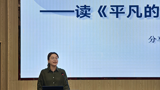 磐安县职业教育中心骨干教师施怡楠分享了阅读《平凡的世界》的心得。她以《黄土高原上的年轮——读〈平凡的世界〉看生命的韧性》为题,深情讲述了孙少平、孙少安兄弟在艰苦环境中不屈奋斗的故事。她表示,作为磐安山区的教育工作者,更应像黄土高原上的草木一样,扎根乡土、坚韧生长,用阅读点亮孩子们的梦想。