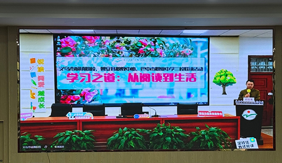 本次活动还邀请了企业代表,义乌市捷豪竹木制品有限公司代表杨婷婷老师以《学中干 干中学——与时俱进的文化》为题,分享了企业视角下的阅读与实践融合之道,拓宽了教育的文化视野。义乌市教研员朱萍英以《如何成为AI时代更会阅读的人》为题作了分享。朱老师围绕AI时代读书的意义、选书的原则、读书的境界等话题深入剖析。她指出,技术固然可以改变阅读的方式,却无法替代人的思考与感悟,真正的阅读,始终是心灵的对话。